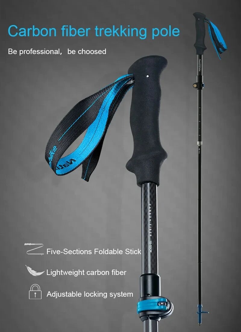 Сверхлегкие 5-секционные складные регулируемые трекинговые палки Naturehike из углеродного волокна для прогулок и походов