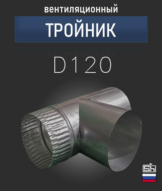 Тройник D120 мм, для круглых воздуховодов из оцинкованной стали