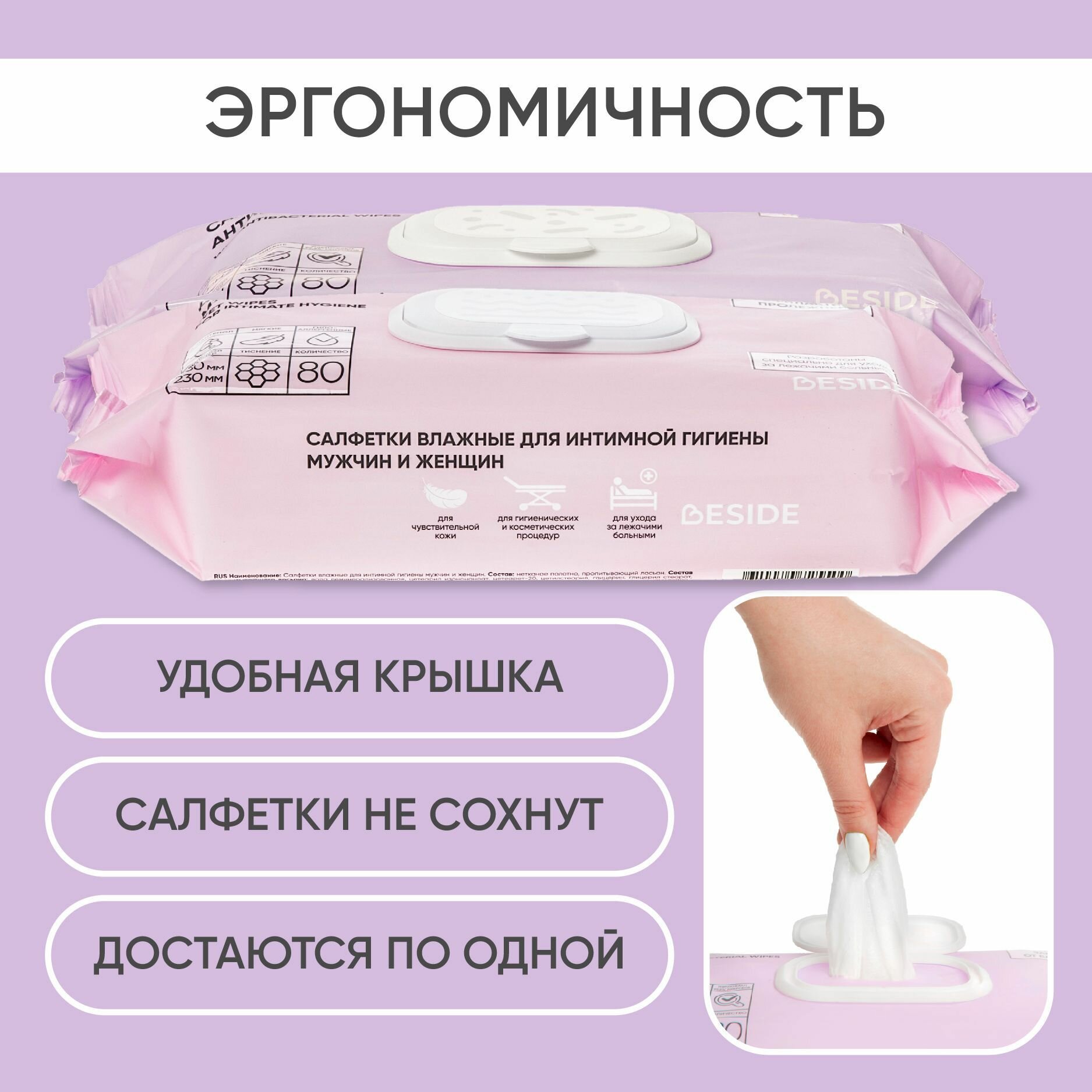 Влажные салфетки BESIDE большие 25х23, 2*80шт набор антибактериальные, для интимной гигиены, полотенца