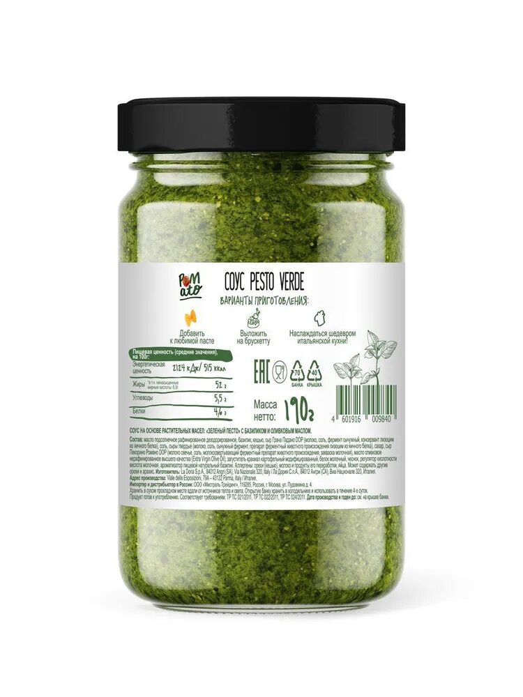 Соус зелёный песто 190 г с базиликом и оливковым маслом Pomato, 1 шт интересное: