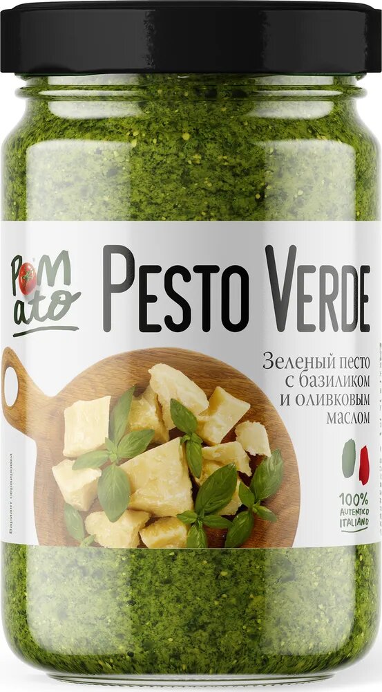 Купить Соус зелёный песто 190 г с базиликом и оливковым маслом Pomato, 1 шт