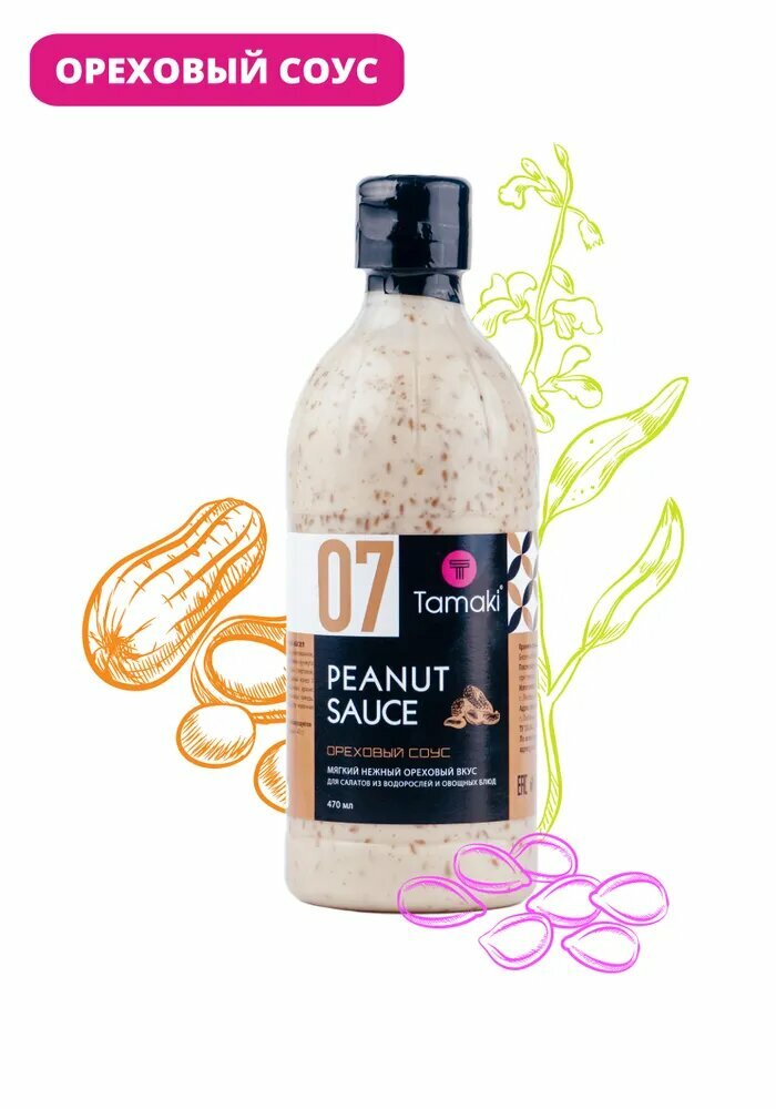 Соус Ореховый Tamaki 470 мл, для салатов, морепродуктов, птицы, лапши, водорослей Чука