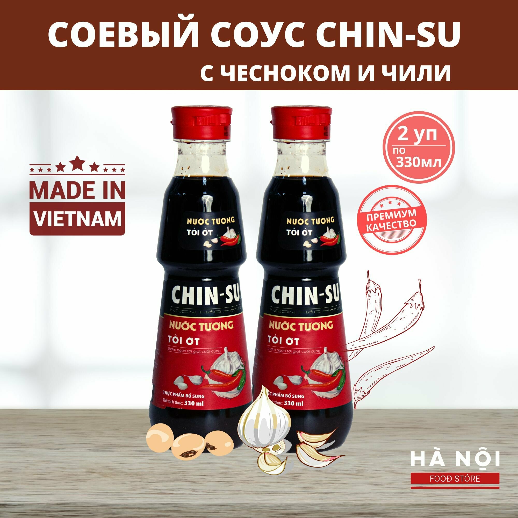 Вьетнамский соевый соус Chin-Su с перцем и чесноком, 330 мл.