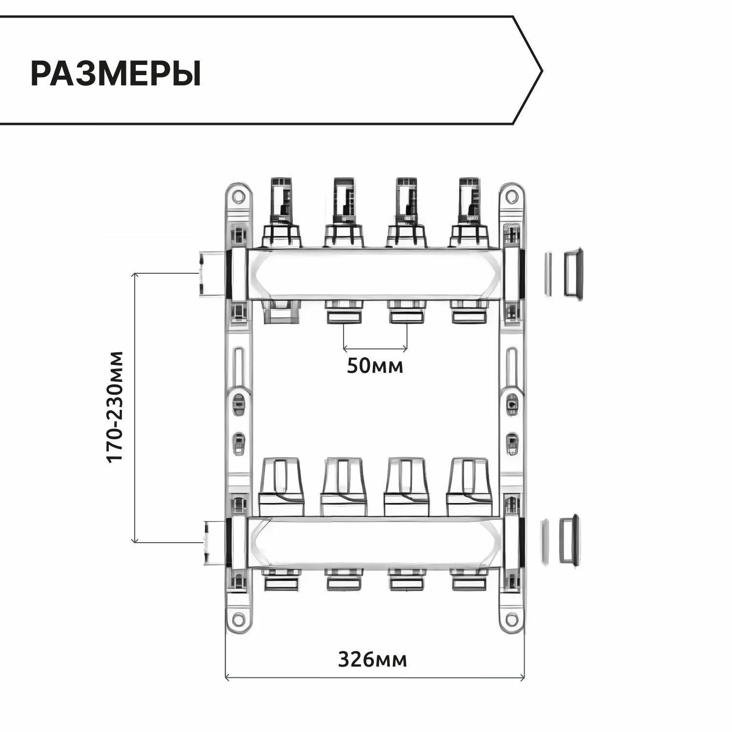 | Подробная комплектация | напорный коллектор с запорными вентилями - 1 шт., обратный коллектор с термостатическими вентилями - 1 шт., дренажные клапаны - 2 шт., цельнометаллический кронштейн - 2 шт., заглушки - 2 шт. |