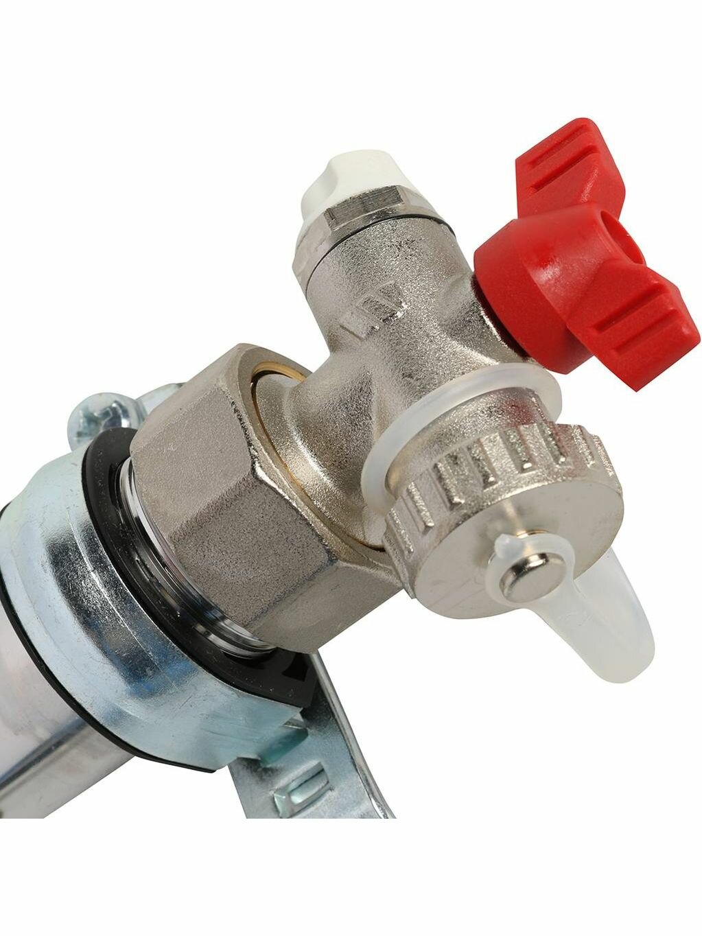 Коллектор проходной запорный STOUT (SMB 6200 341202) 3/4" НР-ВР, 2 отвода 1/2" (красные ручки)