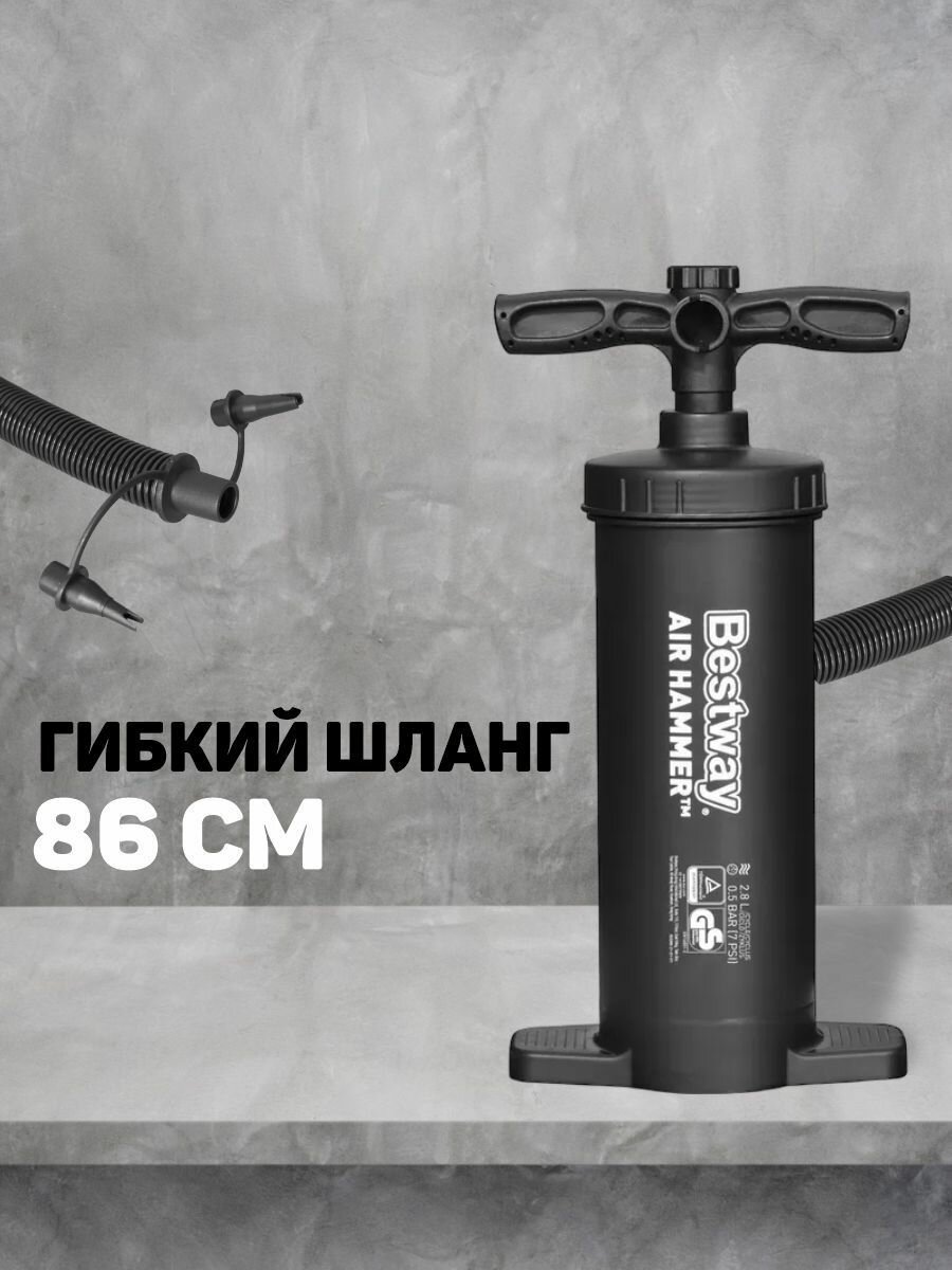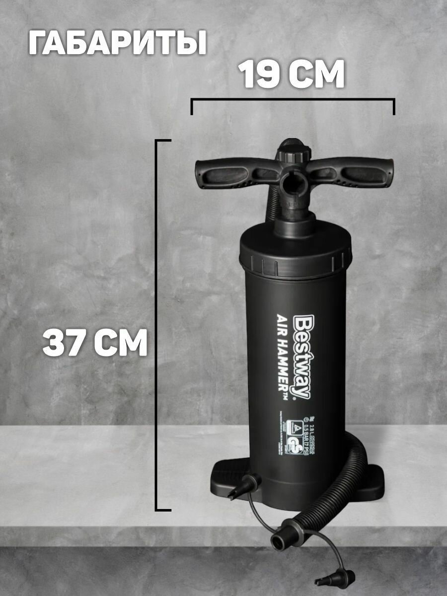 Насос ручной Bestway 37 см с тремя насадками для матраса, круга, бассейна. Арт. 62086