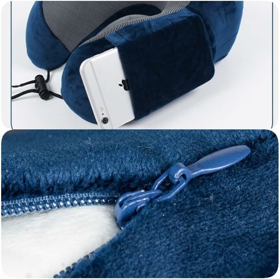 Подушка для шеи с эффектом памяти Velur синяя с карманом