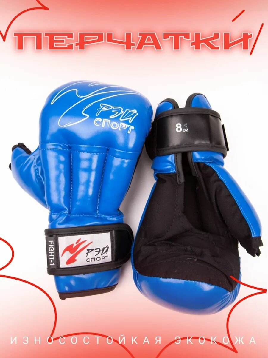 Перчатки для рукопашного боя (лампочки) Рэй-Спорт Fight-1, синий, 8 oz