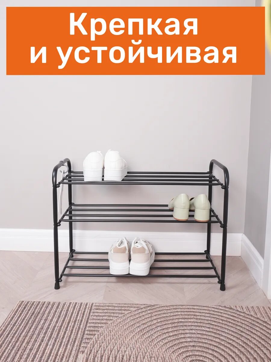 Обувница ЗМИ Верона 23, этажерка в прихожую на 9 пар обуви, 3 металлические полки, черная
