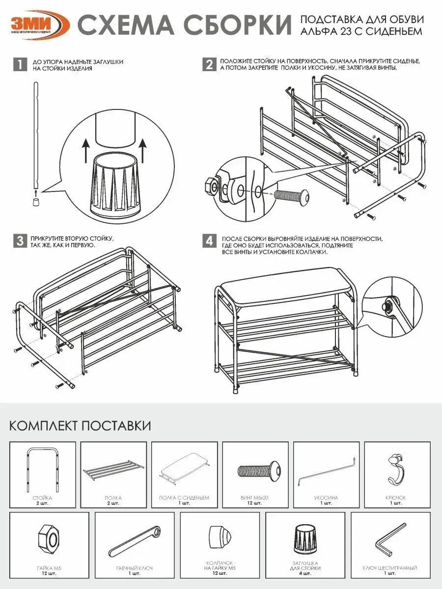 Подставка для обуви Зми "Альфа 23" с сиденьем (ПДОА23С М)