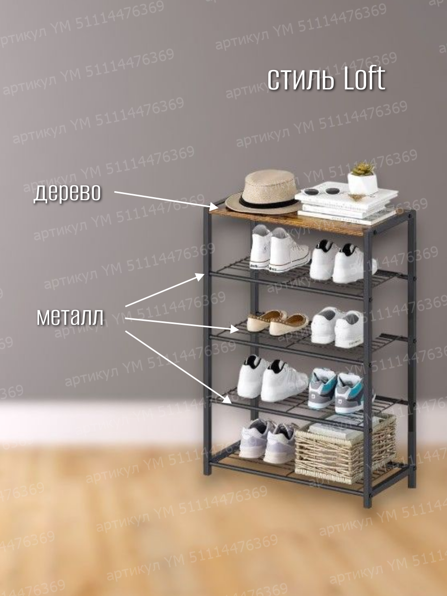 Обувница в прихожую металлическая открытая, Этажерка для обуви в прихожую, Полка для обуви, Стеллаж 5 ярусов
