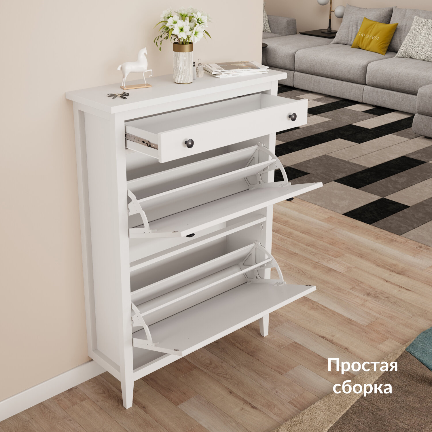 Обувница Leset Токе 3 ящ, Белый, для прихожей интересное: