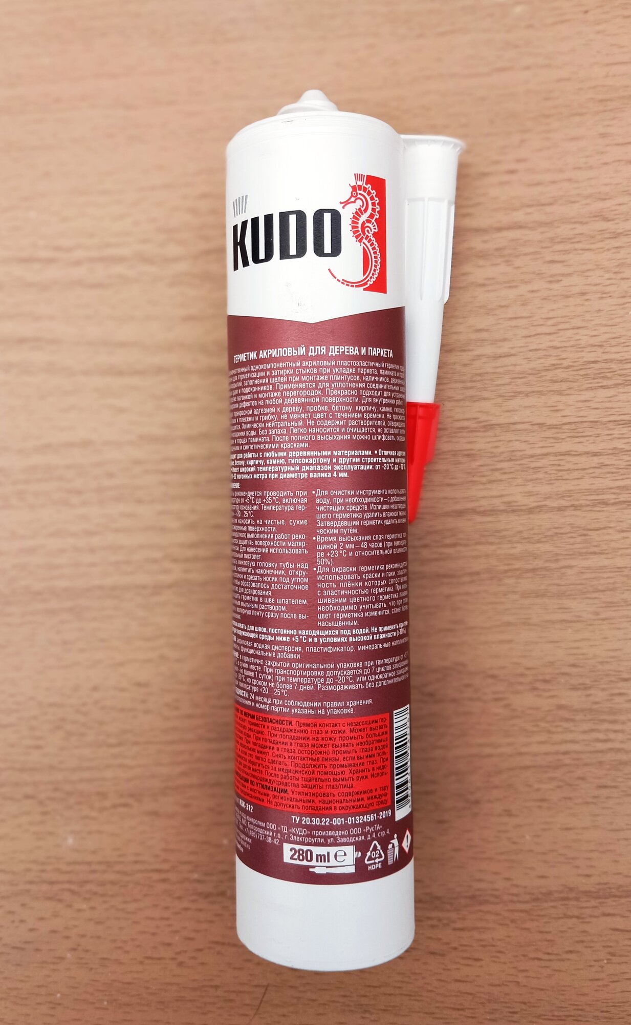 Герметик акриловый KUDO "KSK 311" для дерева и паркета, 280 мл, Белый