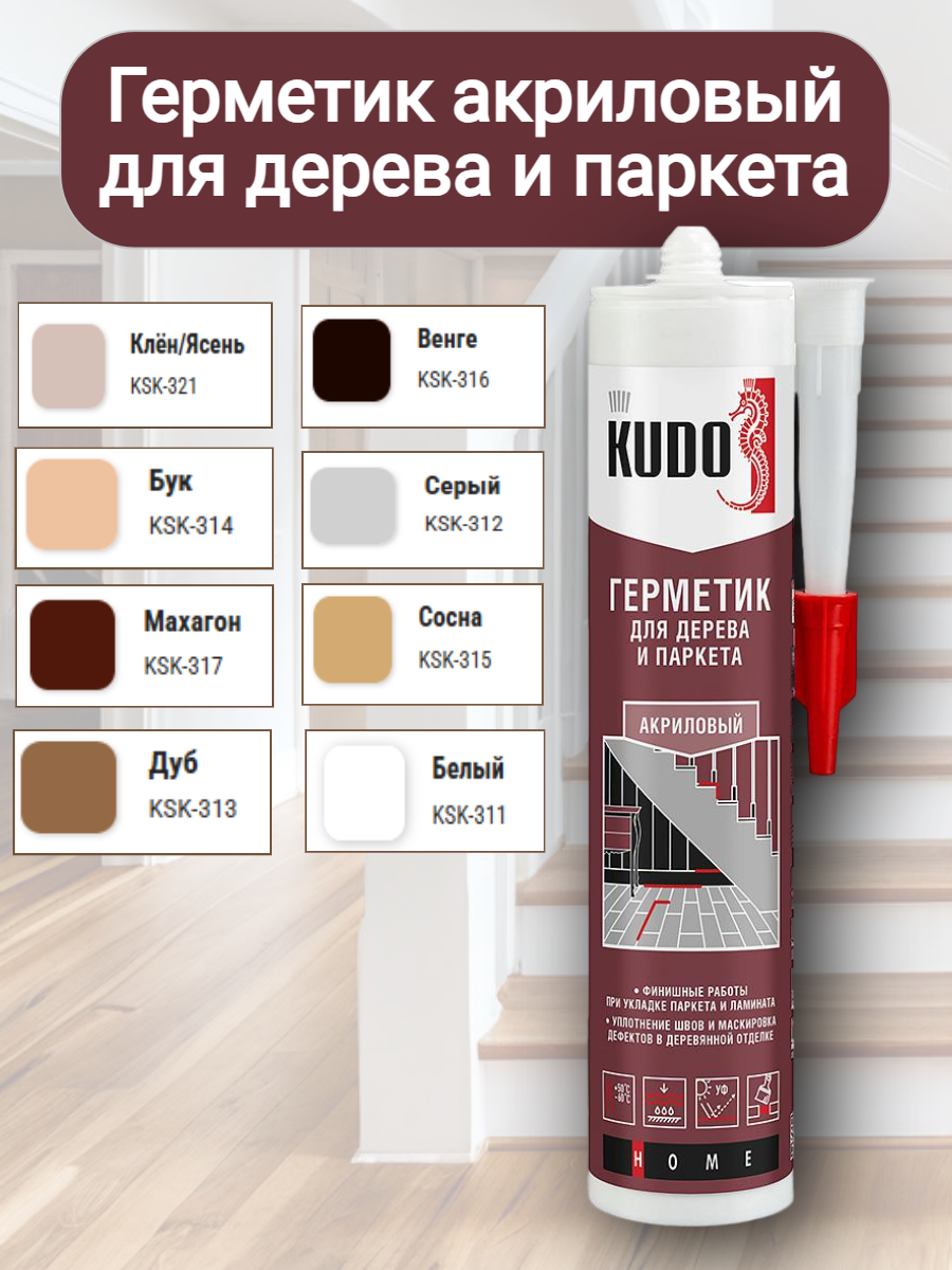 Купить Герметик для дерева паркетный Махагон 280мл kudo