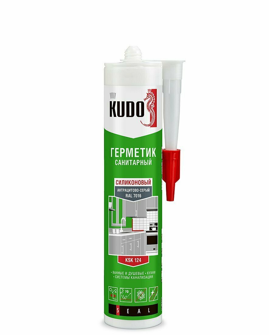 Герметик силиконовый санитарный Kudo KSK-124, 280 мл, антрацитовый серый