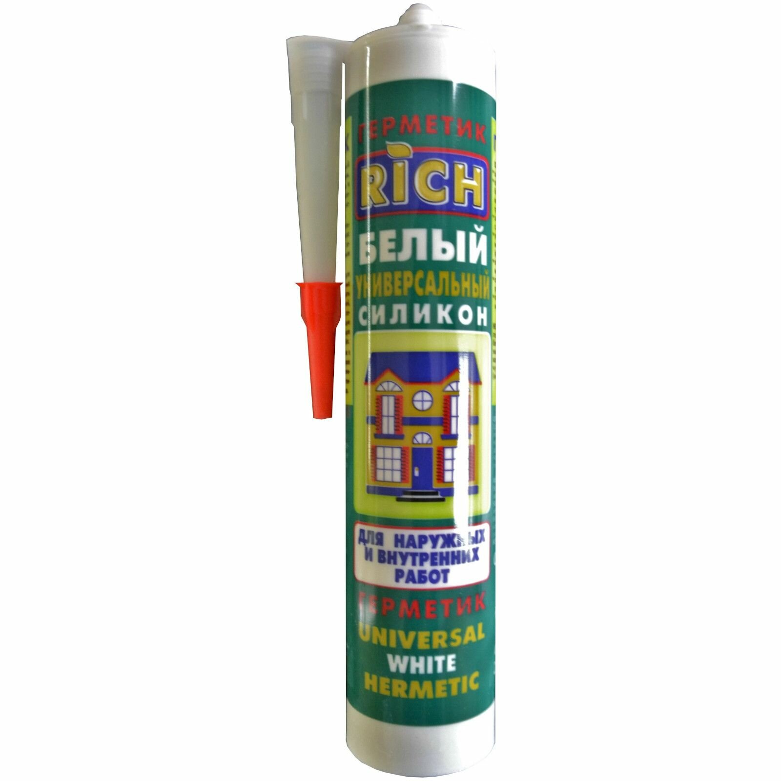 Герметик Rich, силиконовый, универсальный, для ванн и швов, белый, 280мл
