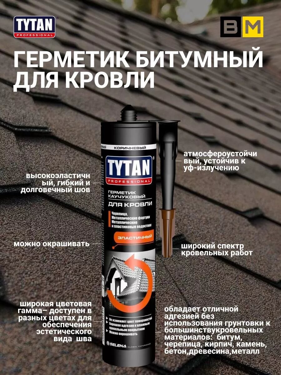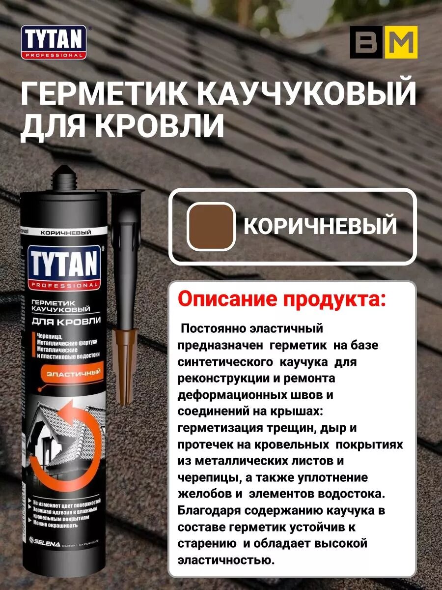 Титан герметик каучуковый кровельный (310мл) коричневый / TYTAN Professional герметик каучуковый для кровли (310мл) коричневый