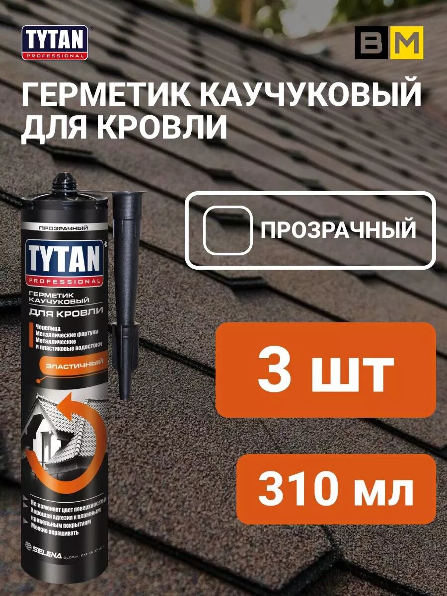 Купить Герметик TYTAN каучуковый для кровли прозрачный 310 мл, 3шт