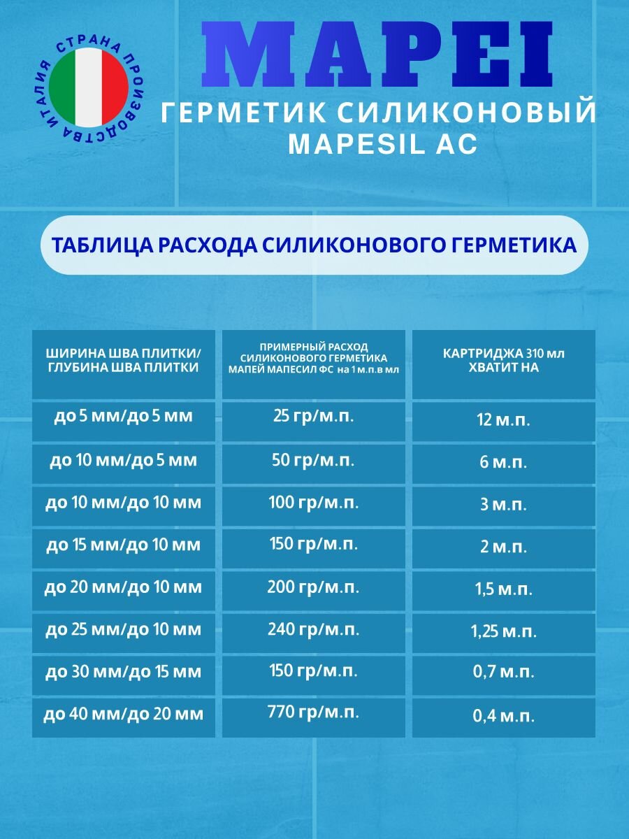 Cиликоновый герметик MAPEI MAPESIL AC 168 Лазурный, 0.310 кг