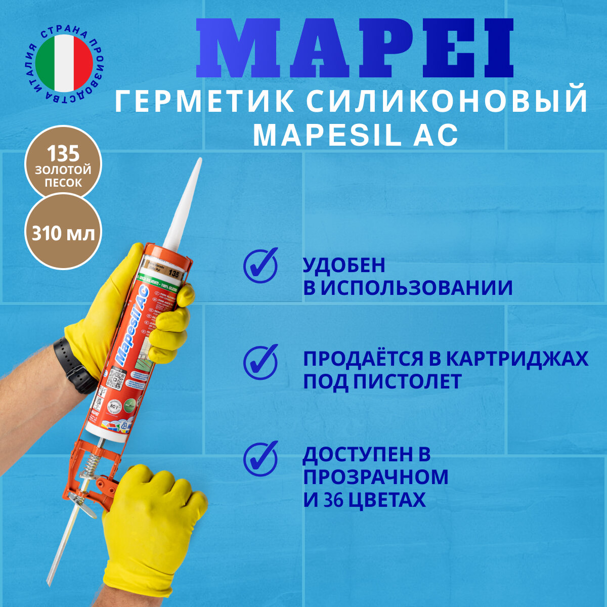 Ниже Вы можете прочитать отзывы на Силиконовый герметик Mapei Mapesil AC №135 золотой песок 310 мл, ознакомится с подробными характеристиками, посмотреть интересные обзоры и фотографии на Силиконовый герметик Mapei Mapesil AC №135 золотой песок 310 мл.