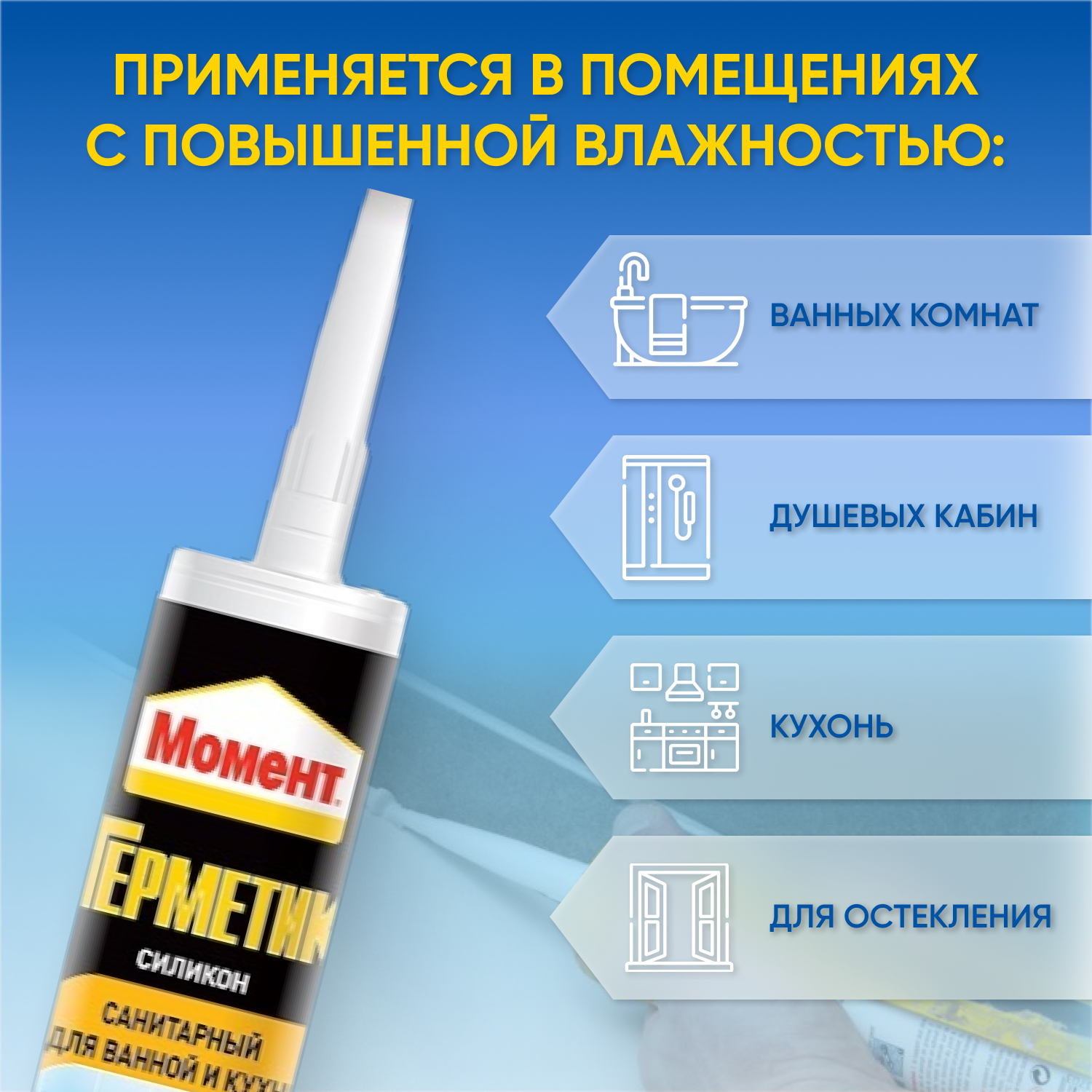 | Подробная комплектация | Герметик силиконовый МОМЕНТ санитарный 280мл бесцветный, арт.2002675 |