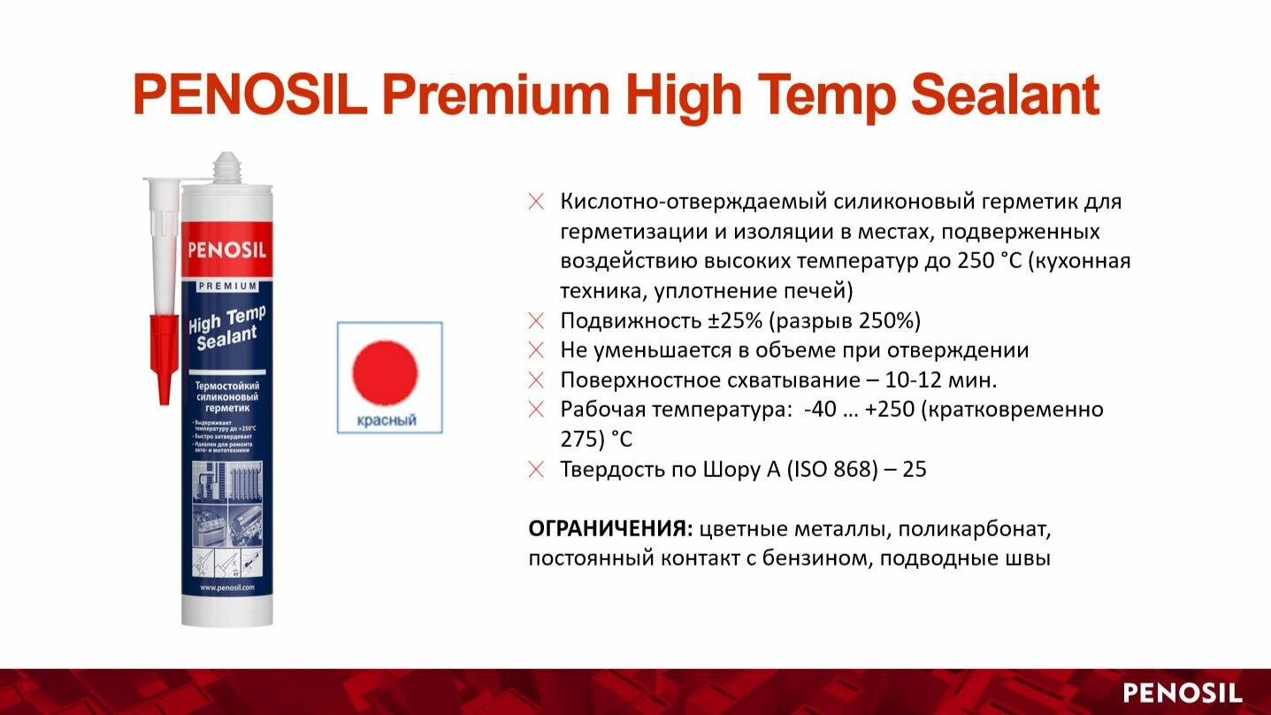 Герметик Penosil Sealant силиконовый высокотемпературный красный, 280ml H4189 интересное: