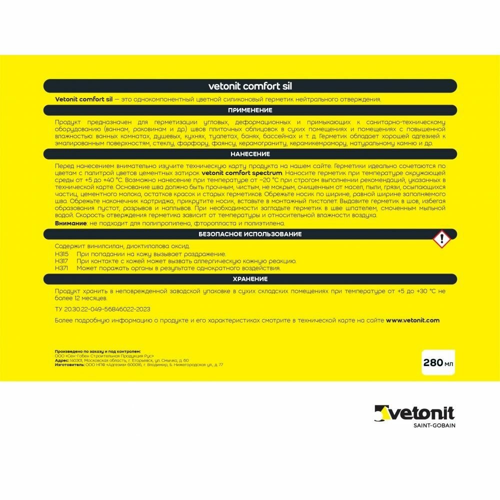 | Подробная комплектация | VETONIT СOMFORT SIL 280 мл -1 шт. |