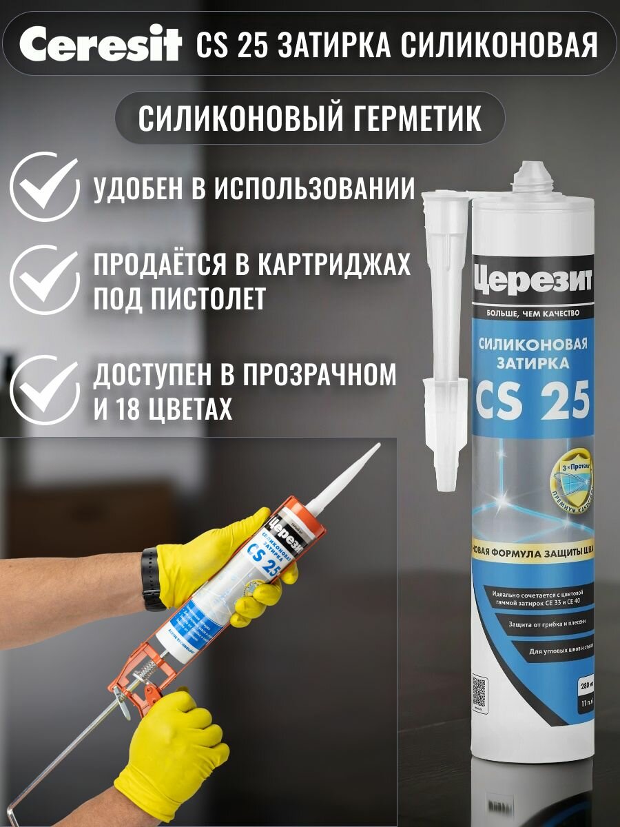 Затирка-герметик силиконовая Церезит CS 25 №41 натура 280 мл / для ванной, для кухни