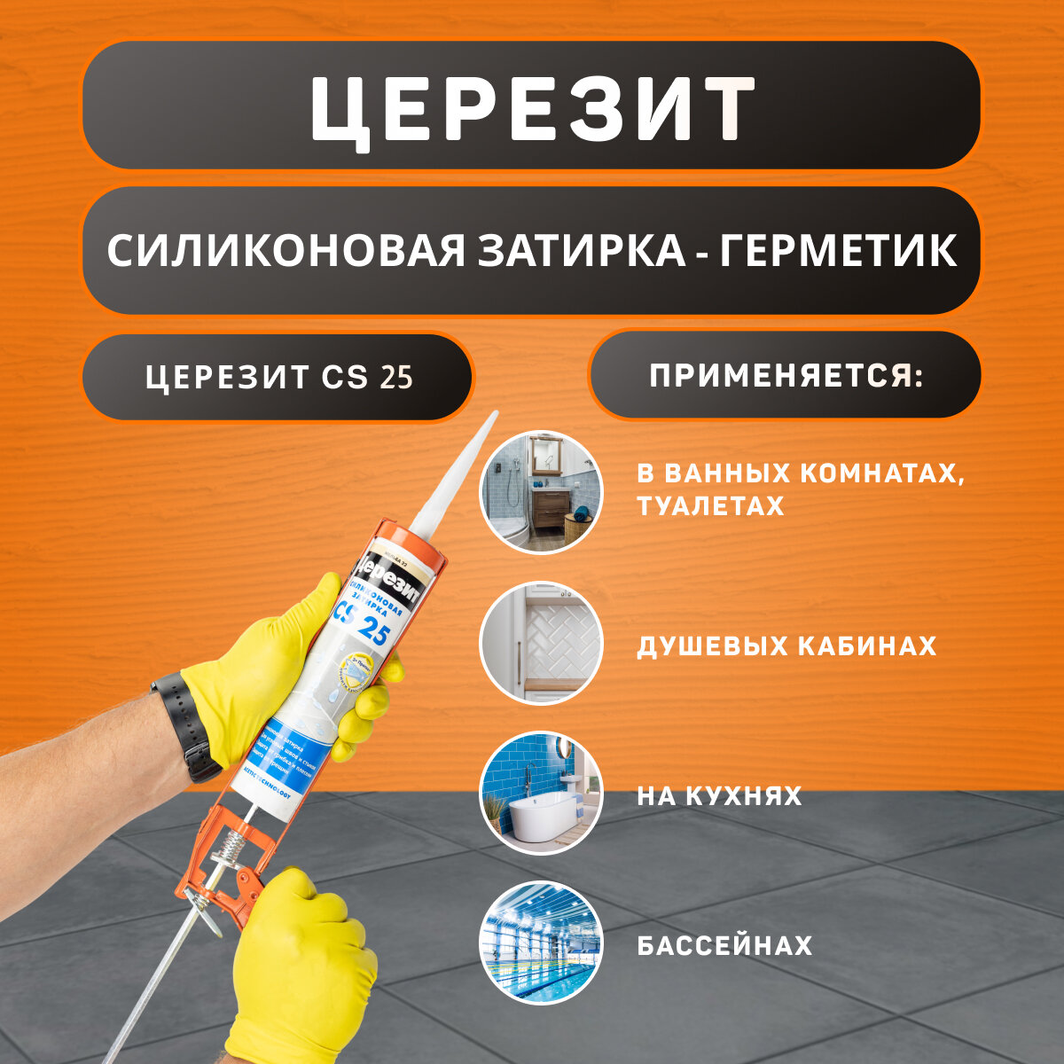 Затирка-герметик силиконовая Церезит CS 25 №41 натура 280 мл / для ванной, для кухни