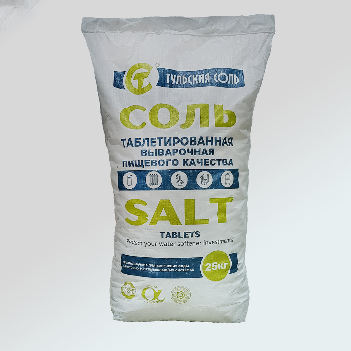 Соль таблетированная для водоподготовки выварочная пищевого качества 25 кг Массовая доля нерастворимого в воде остатка 0,03 %