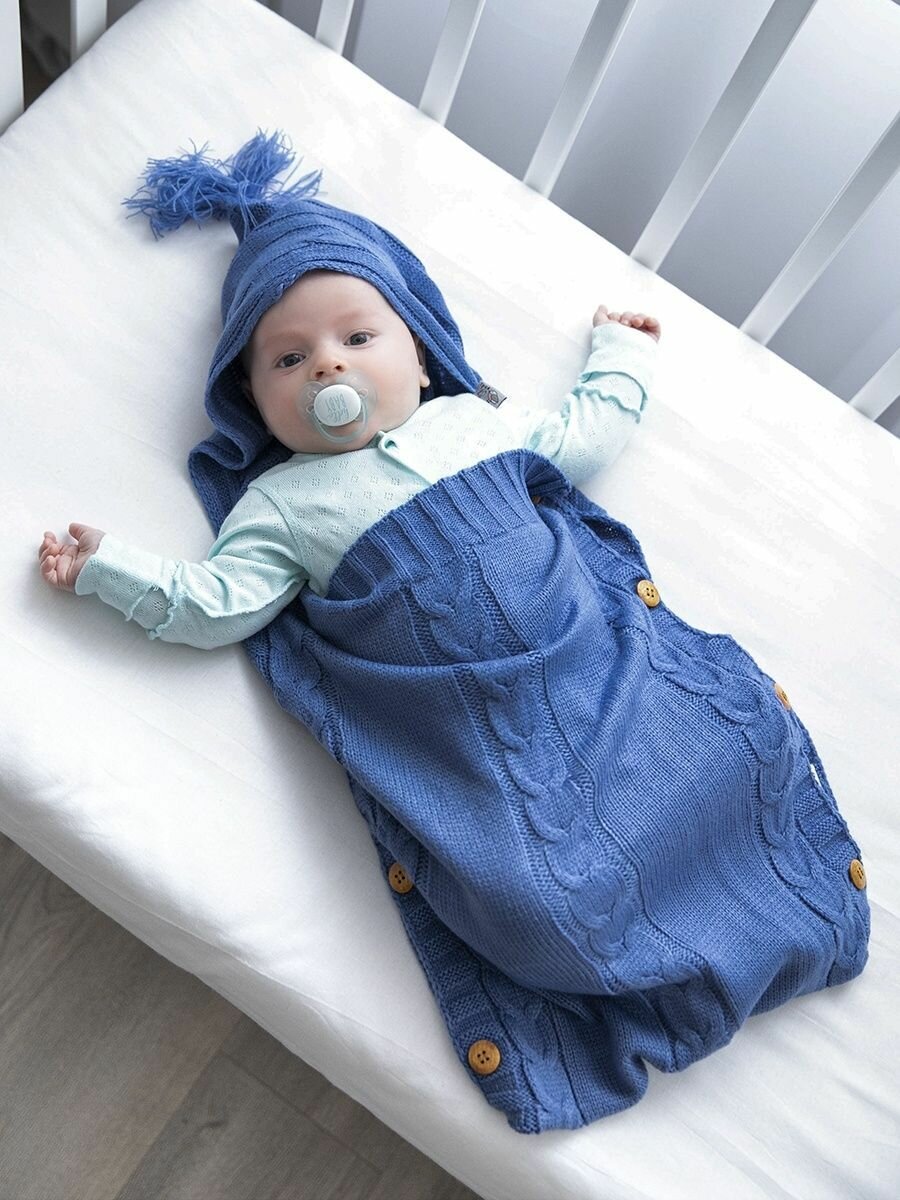 СохранитьВязаный конверт Tessolo Home, для новорожденных, 72x36 см, универсальный, синий интересное: