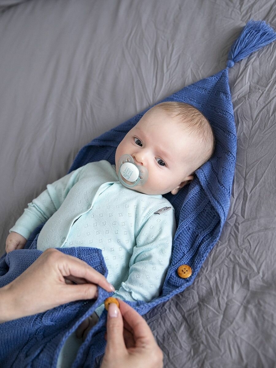Купить Вязаный конверт Tessolo Home, для новорожденных, 72x36 см, универсальный, синий
