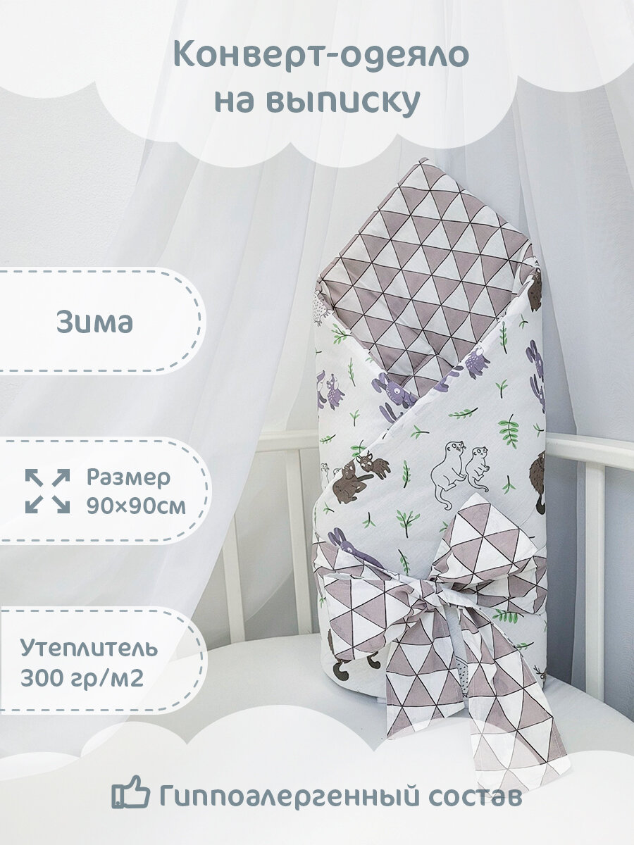 Конверт-одеяло зимний "Милые зверята", 90х90см