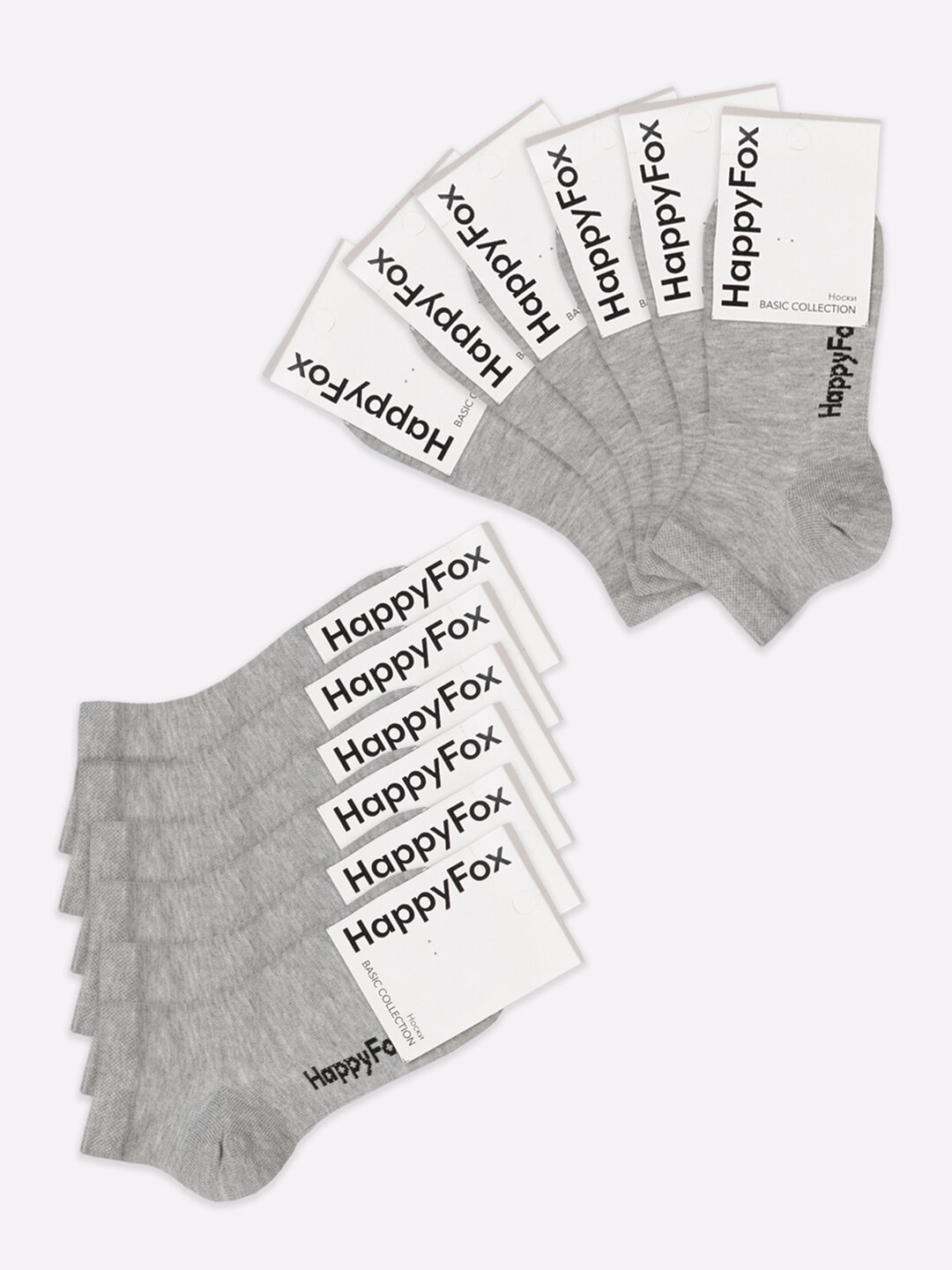 Носки набор детские 12 пар хлопок HappyFox HFET2001NB св.серыймеланж.12. 22-24