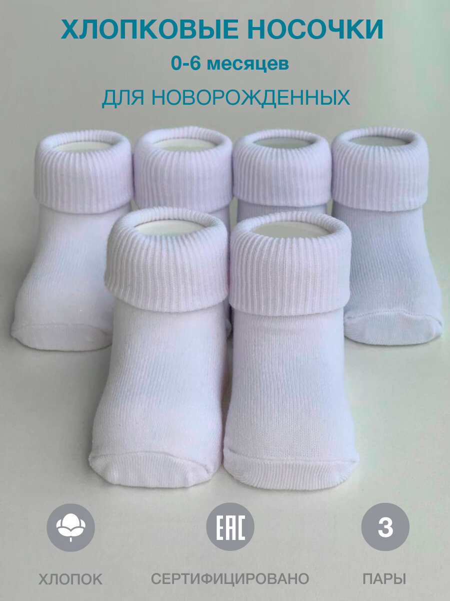 Носки для новорождённых Nimarko 0-6 мес, 3 шт в упаковке, белые