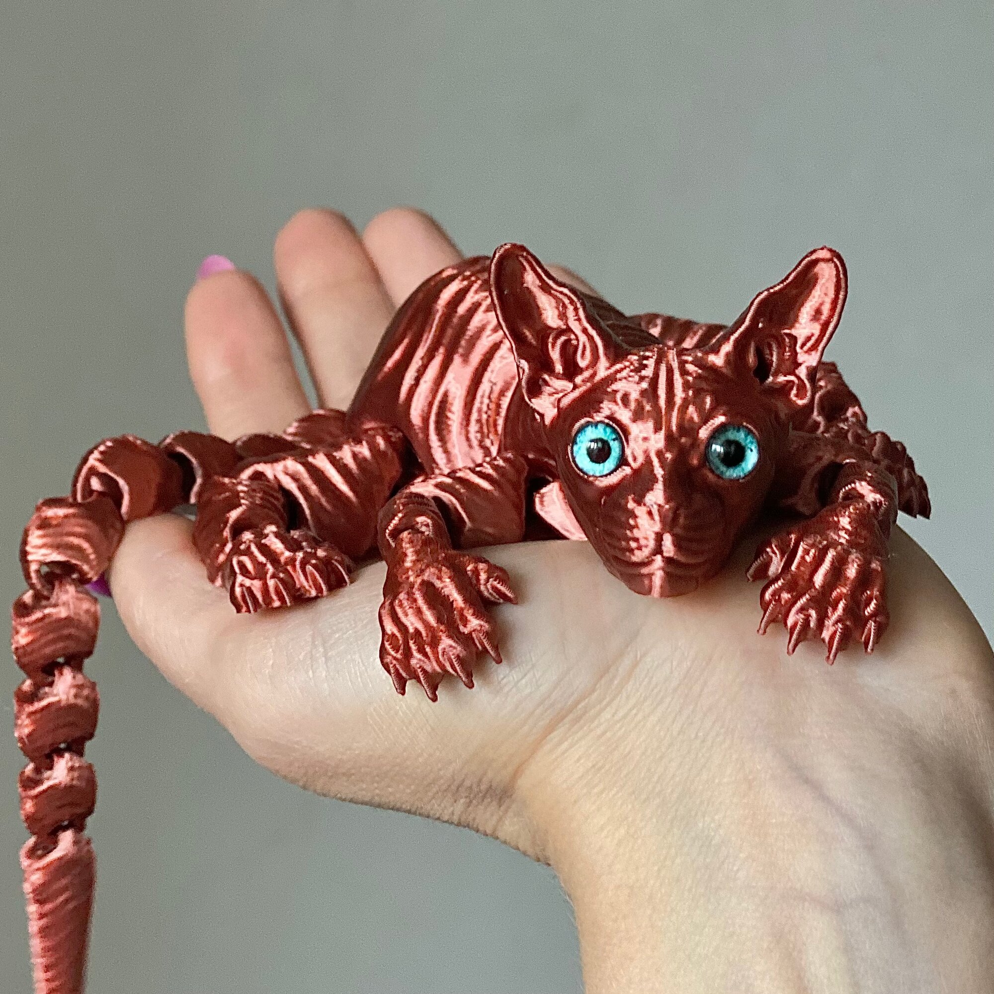 Купить Игрушка антистресс Кот сфинкс подвижный, пластик, медный, 22,5см, стеклянные глаза