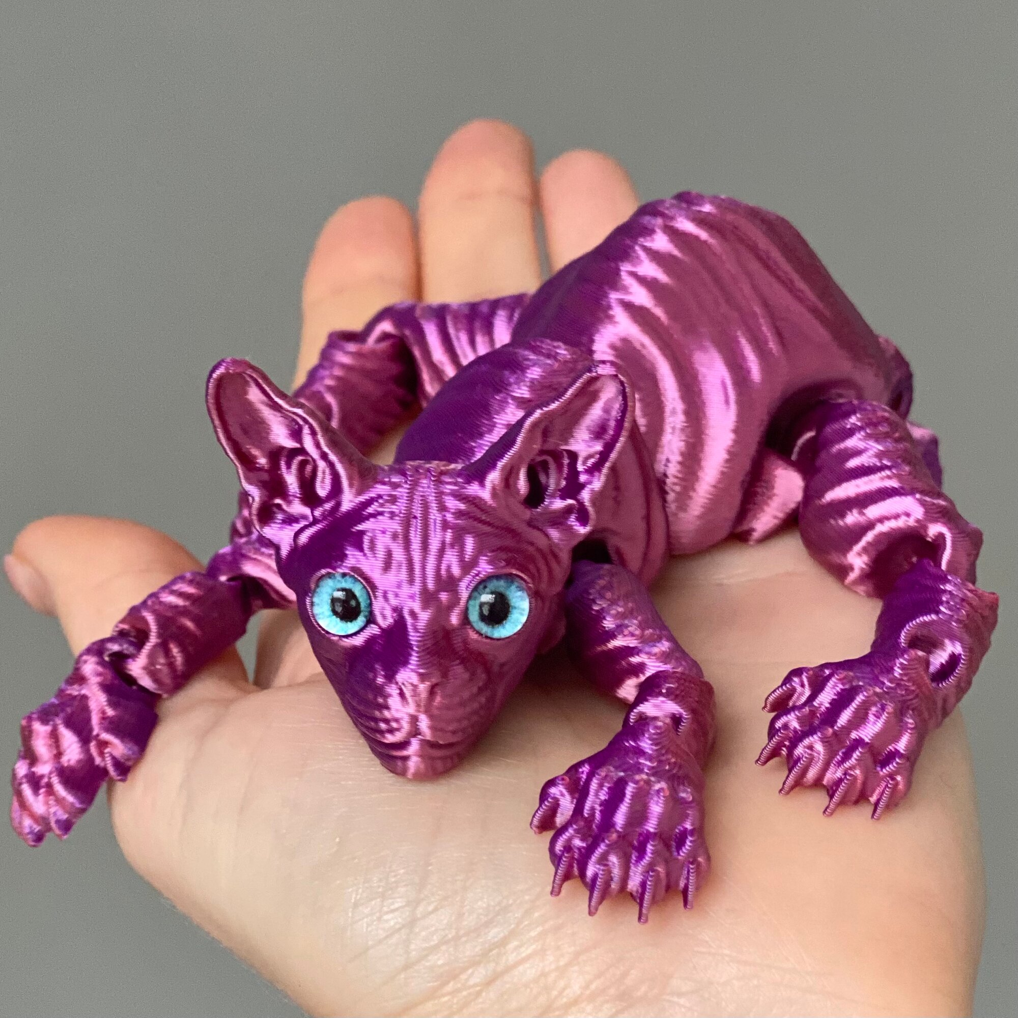 Купить Игрушка антистресс Кот сфинкс подвижный, пластик, пурпурный, 22,5см, стеклянные глаза