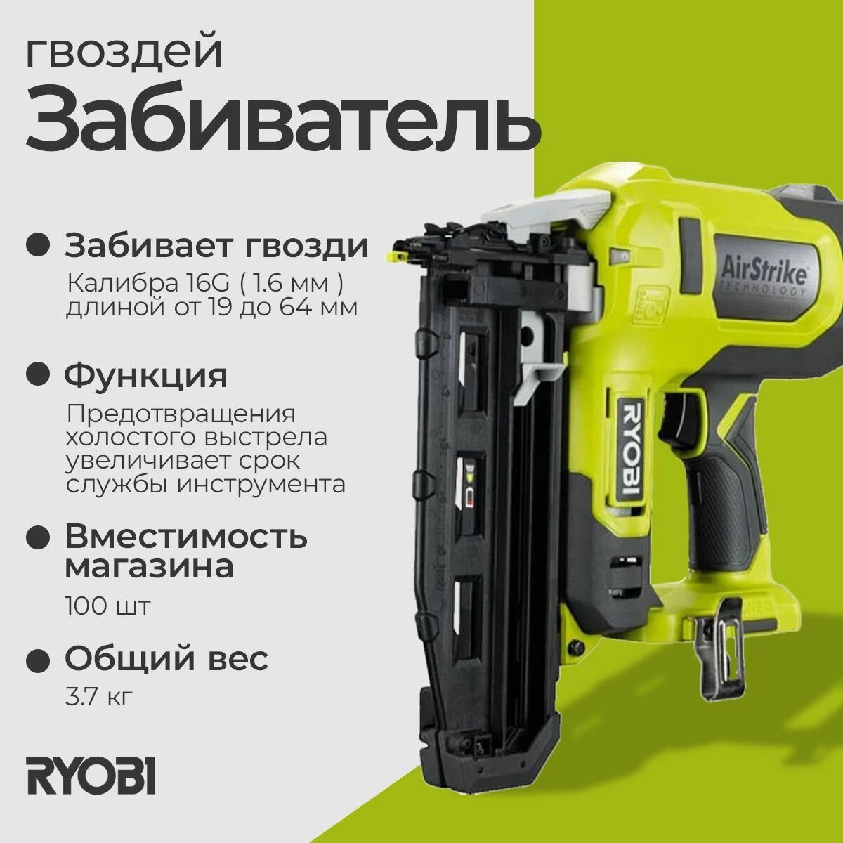 Гвоздезабиватель Ryobi R16GN18-0 ONE+ 5133005137 интересное: