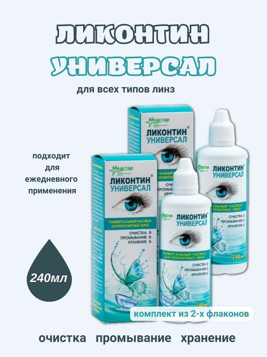 Ликонтин раствор для линз универсальный для линз всех типов 240 мл 2шт интересное: