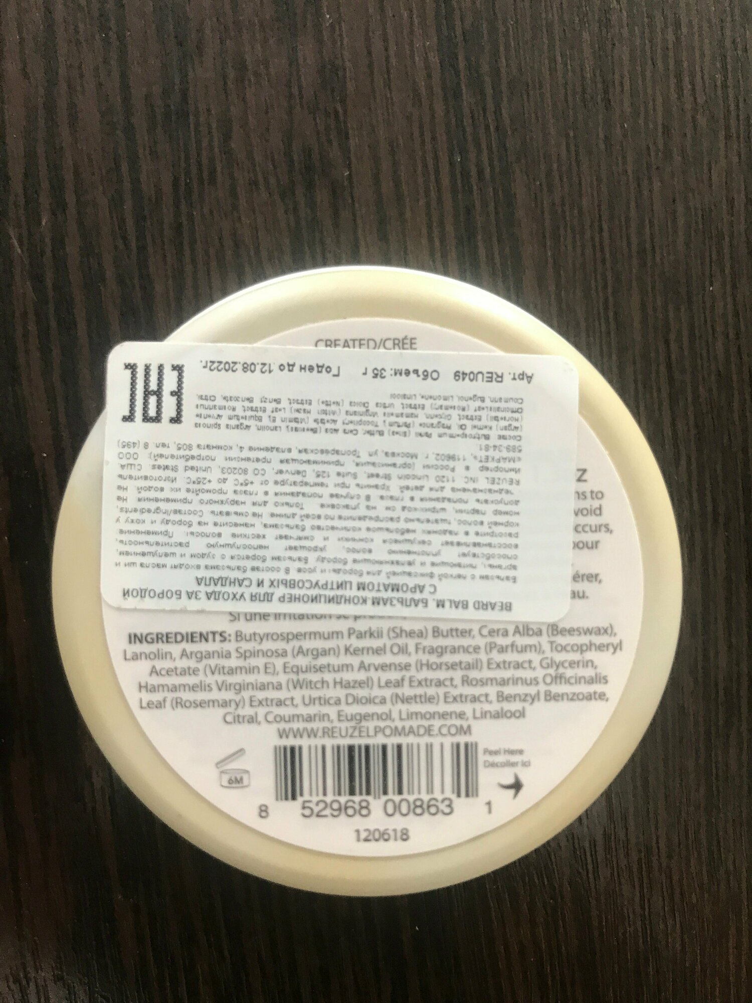 | Дополнительная информация | аромат цитрусовых и сандала, способ применения: возьмите на палец небольшое количество бальзама, разогрейте между ладонями и нанесите на бороду и усы, расчешите расческой и придайте форму бороде и усам |