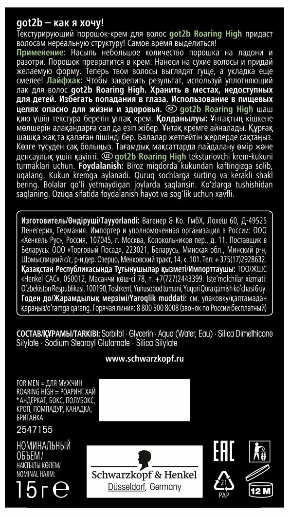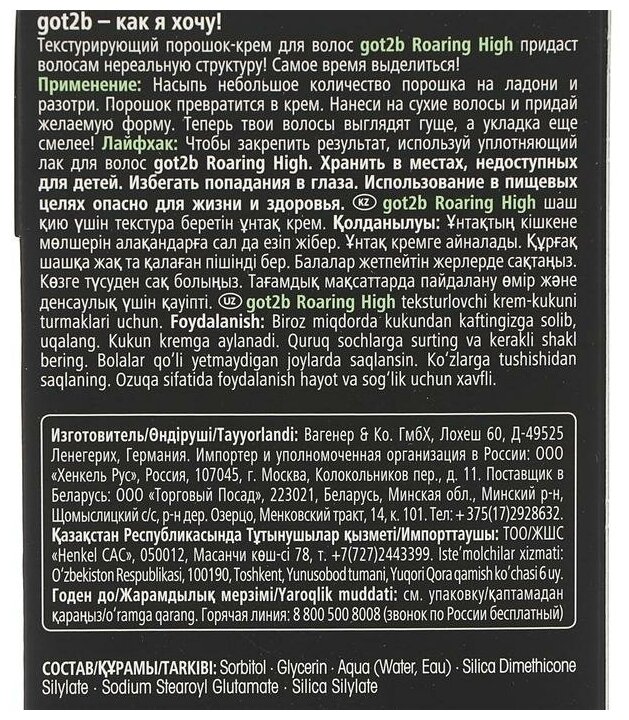 Порошок-крем got2b ROARING High, для всех типов волос, текстура, 15мл интересное: