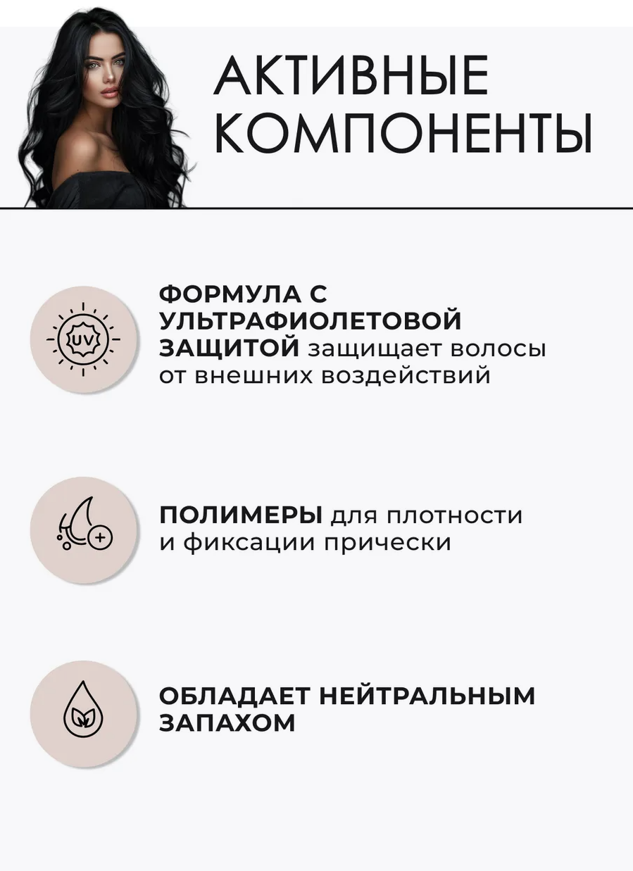 | Способ применения | распылите на сухие волосы с расстояния 30 см |