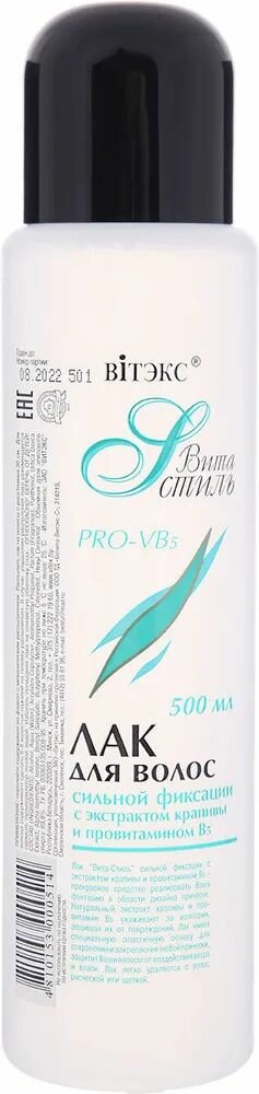 Витекс Крапива и лопух Лак для волос с PROV-B5 и экстрактом крапивы сильной фиксации. Без дозатора. 500мл