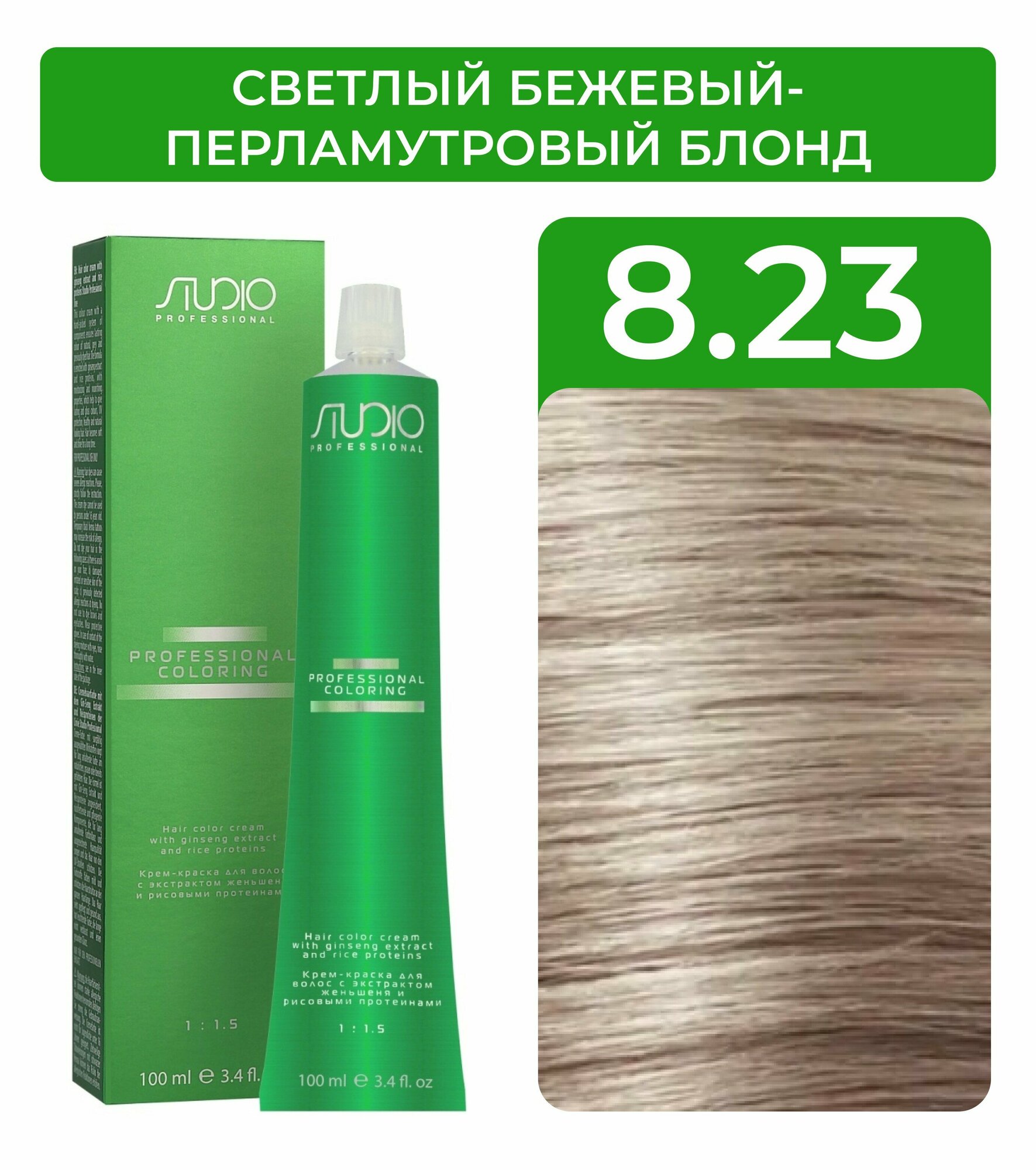 Купить Kapous Studio Professional Крем-краска для волос Studio, тон №8.23, Светлый бежевый перламутровый блонд, с рисовыми протеинами и экстрактом женьшеня,