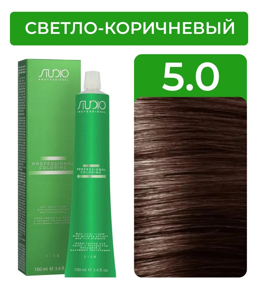 Купить Kapous Studio Professional Крем-краска для волос Studio, тон №5.0, Светло-коричневый, с рисовыми протеинами и экстрактом женьшеня, 100 мл