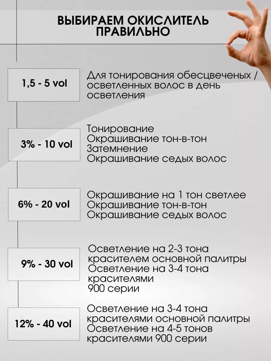 | Дополнительная информация | необходима предварительная диагностика перед окрашиванием; в первую очередь необходимо определить уровень глубины цвета натуральных волос и процент седины; для определения цвета волос использовать шкалу натуральных оттенков палитры; важно: в случае не точной диагностики и определения исходного цвета волос, цвет волос после окрашивания может не совпадать с выбранным из палитры на 100% |