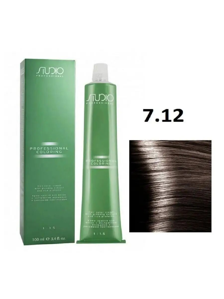 Купить Kapous Studio Professional Крем-краска для волос Studio, тон №7.12, Пепельно-перламутровый блонд, с рисовыми протеинами и экстрактом женьшеня, 100 мл