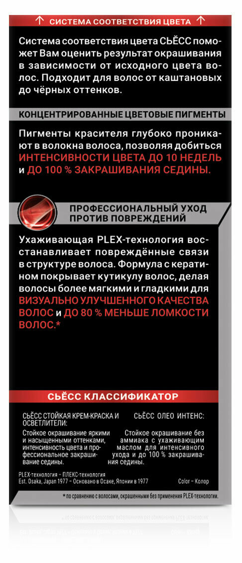 | Дополнительная информация | краски для волос могу вызывать серьезные аллергические реакции. Проведите тест на аллергическую реакцию. Продукт не предназначен для лиц младше 16 лет. Содержит перекись водорода. Избегать попадания в глаза |