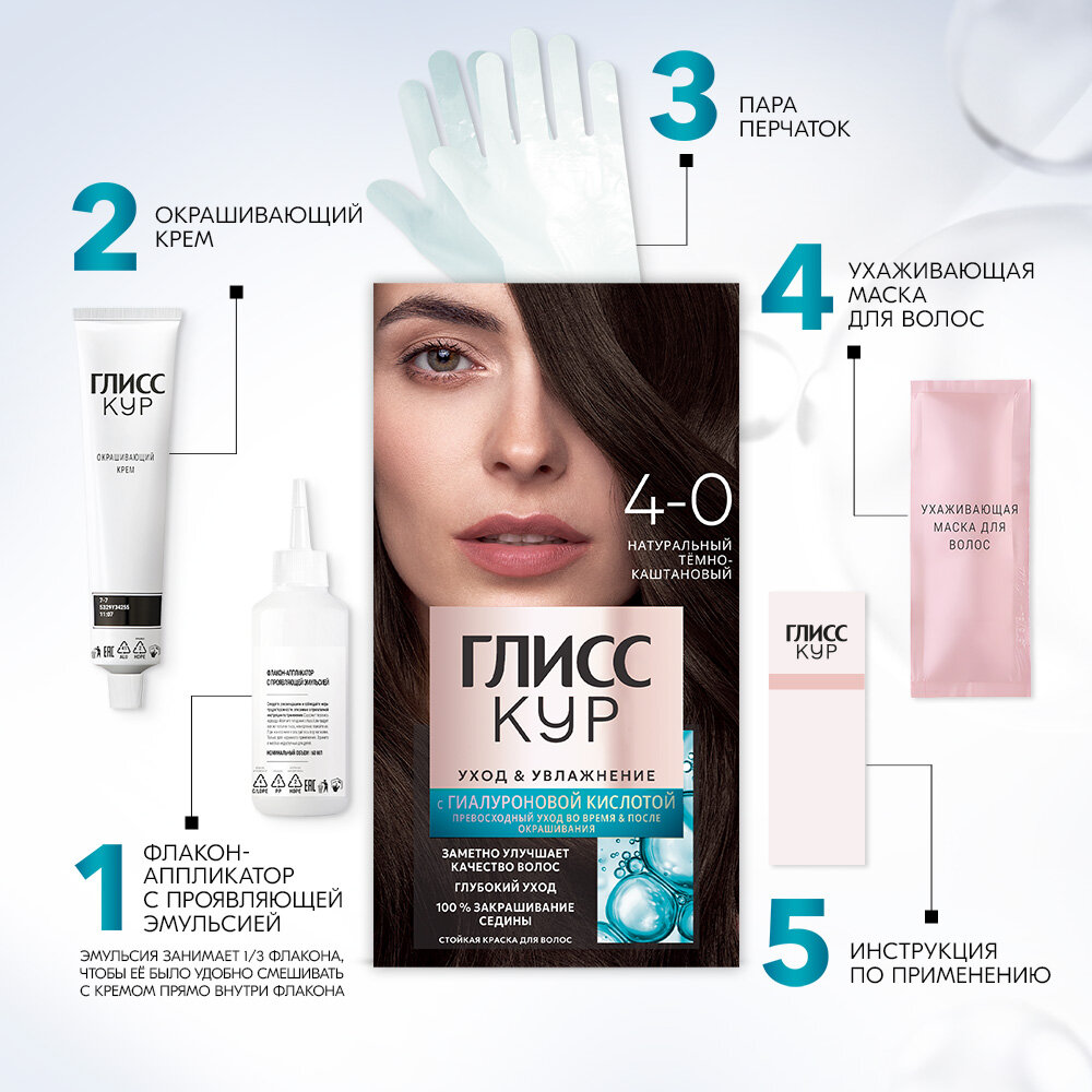 СохранитьГлисс Кур Стойкая краска для волос Уход & Увлажнение, 4-0 Тёмно-каштановый, 135 мл интересное: