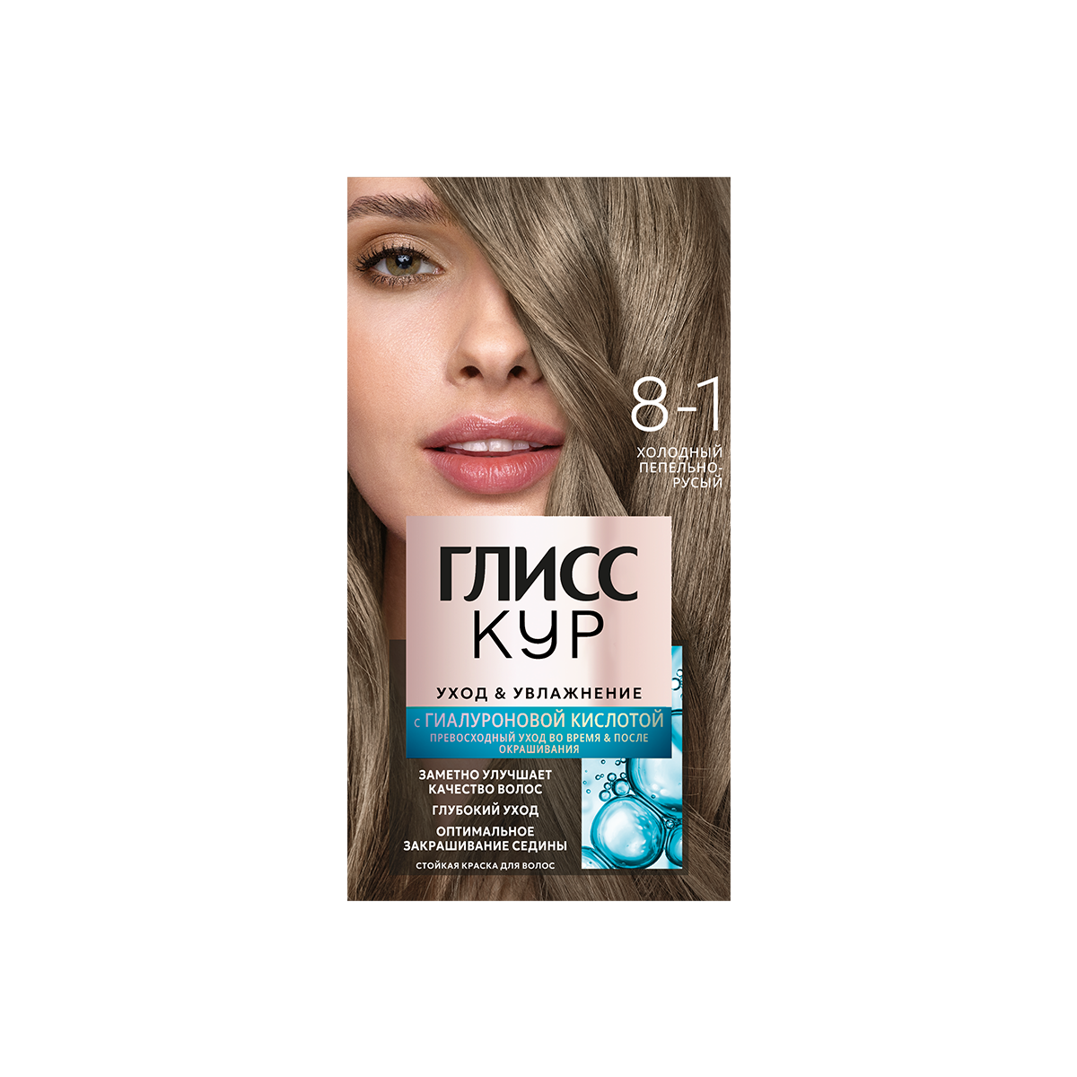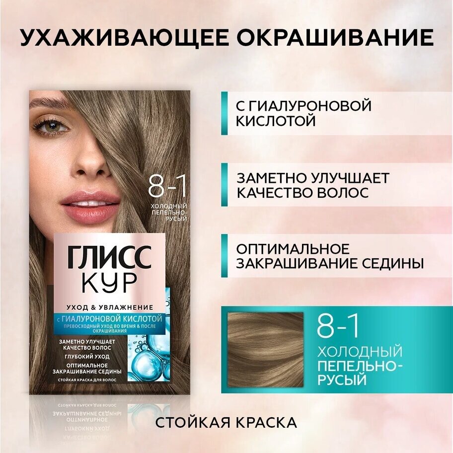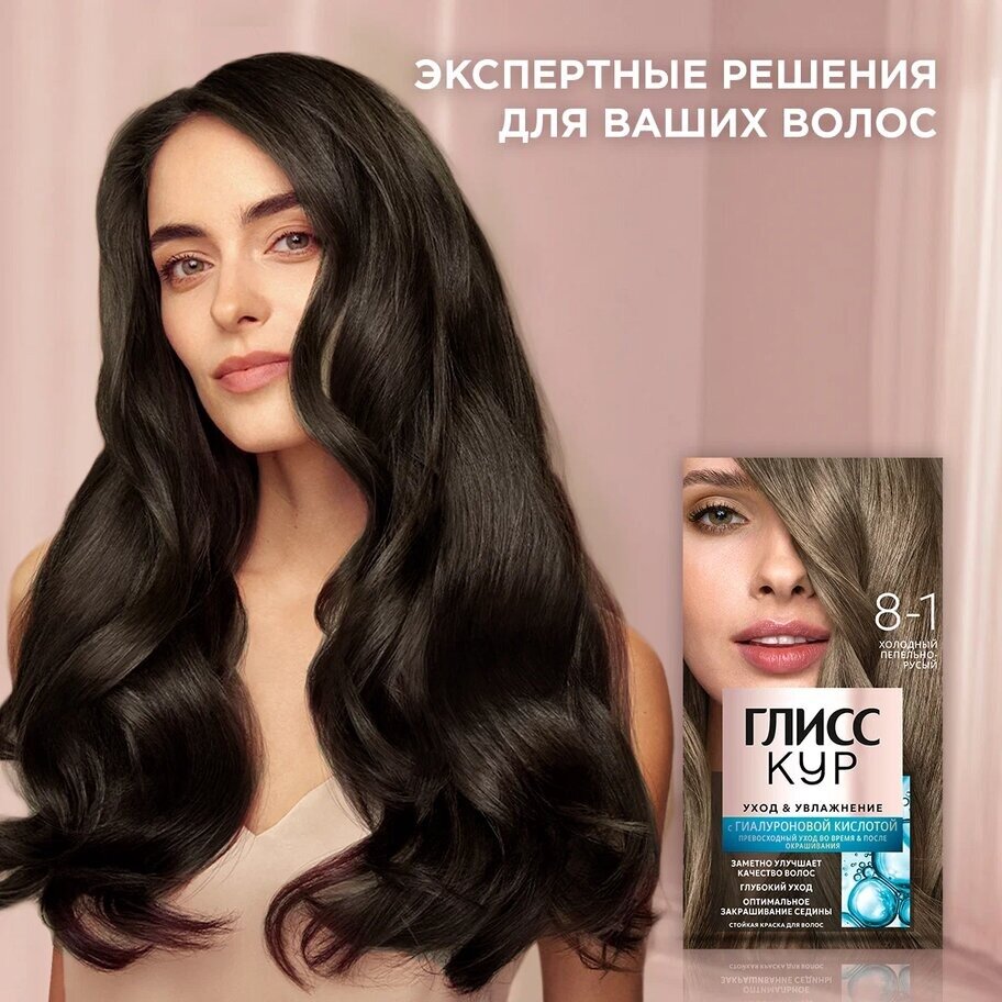 Купить Глисс Кур Уход & Увлажнение Стойкая краска для волос, 8-1 холодный пепельно-русый, 143 мл